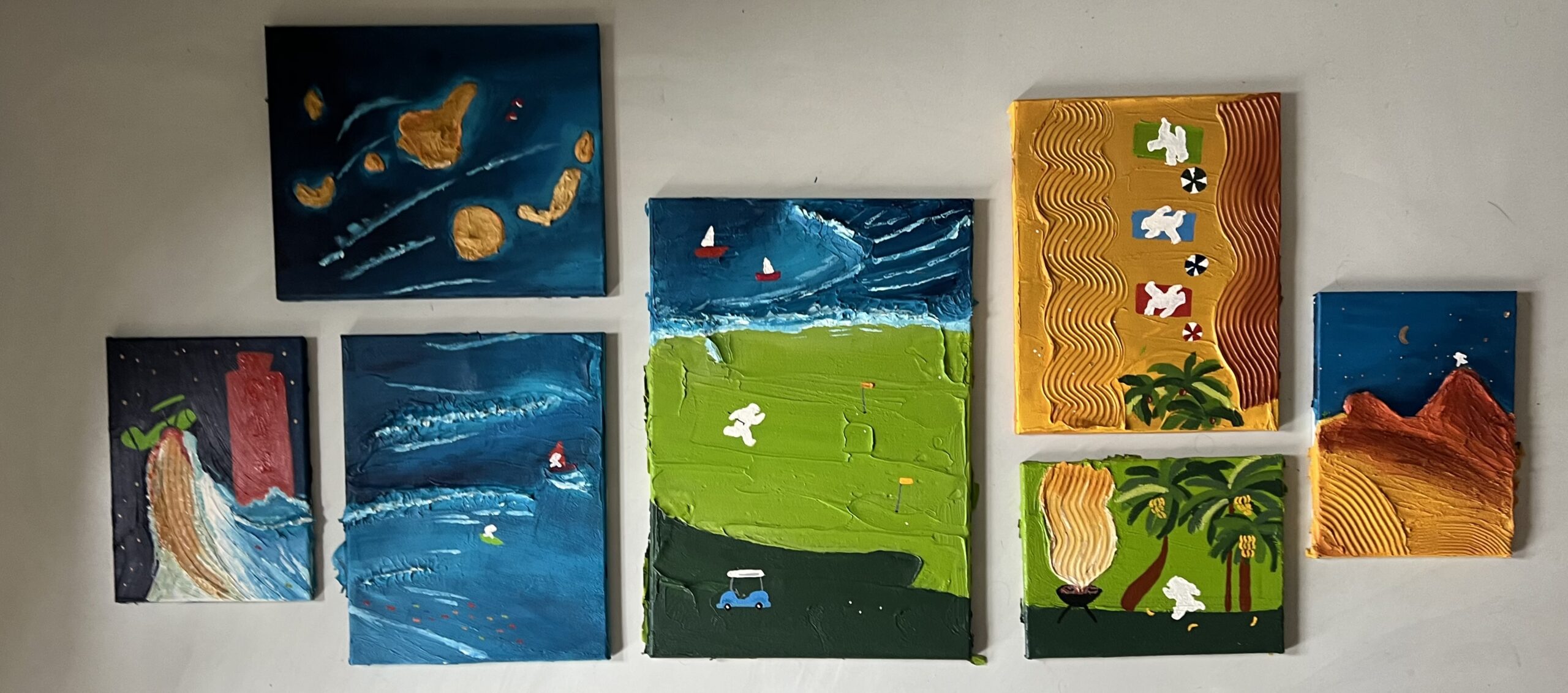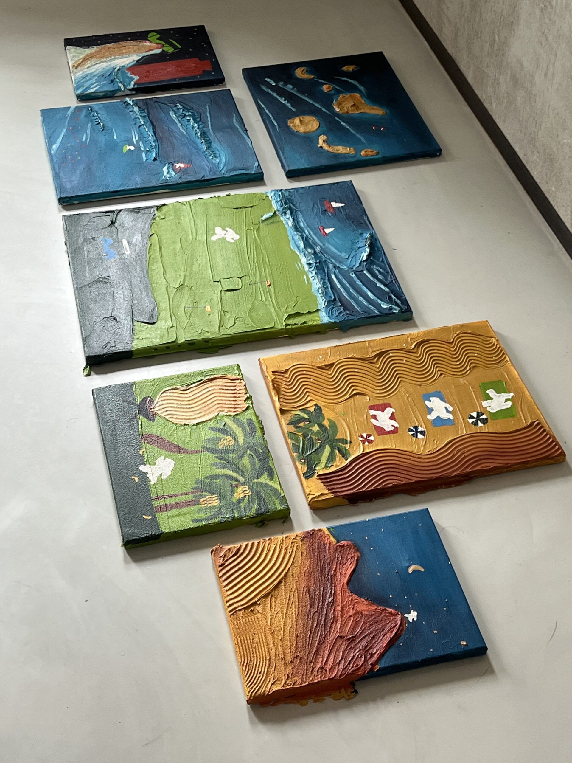 These textured works unfold like quiet terrains of feeling. Built up in layers, they carry the weight of time and touch, where surface becomes memory and depth turns into light. Each piece resists fixed meaning, instead offering a shifting landscape that invites the eye to wander and the hand to imagine what it might sense.